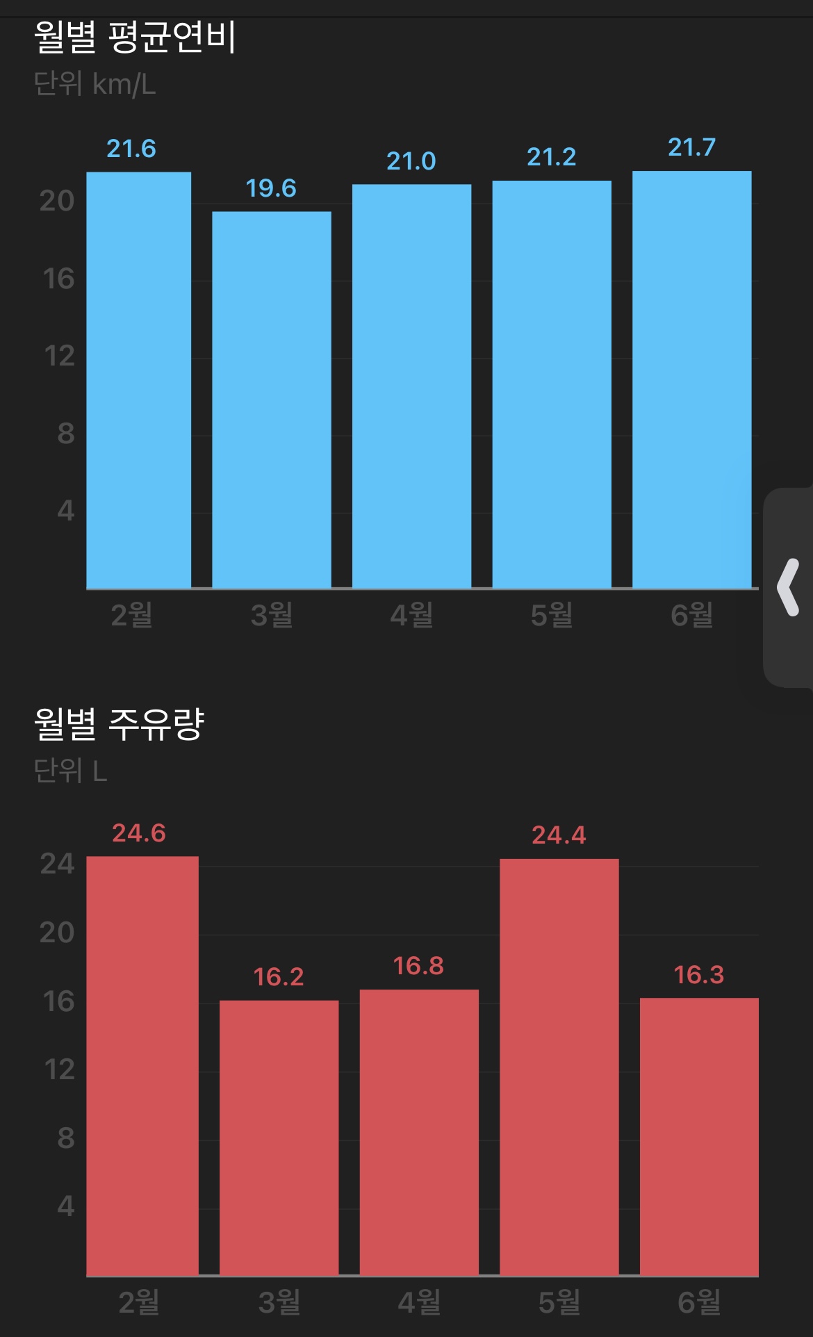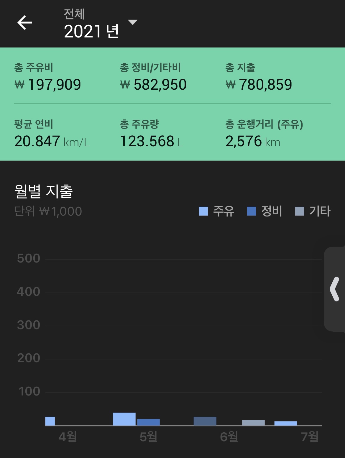 작년에 비해 주유 평균 단가가 너무 많이 올라서 작년만큼 탄것 같진 않네요.