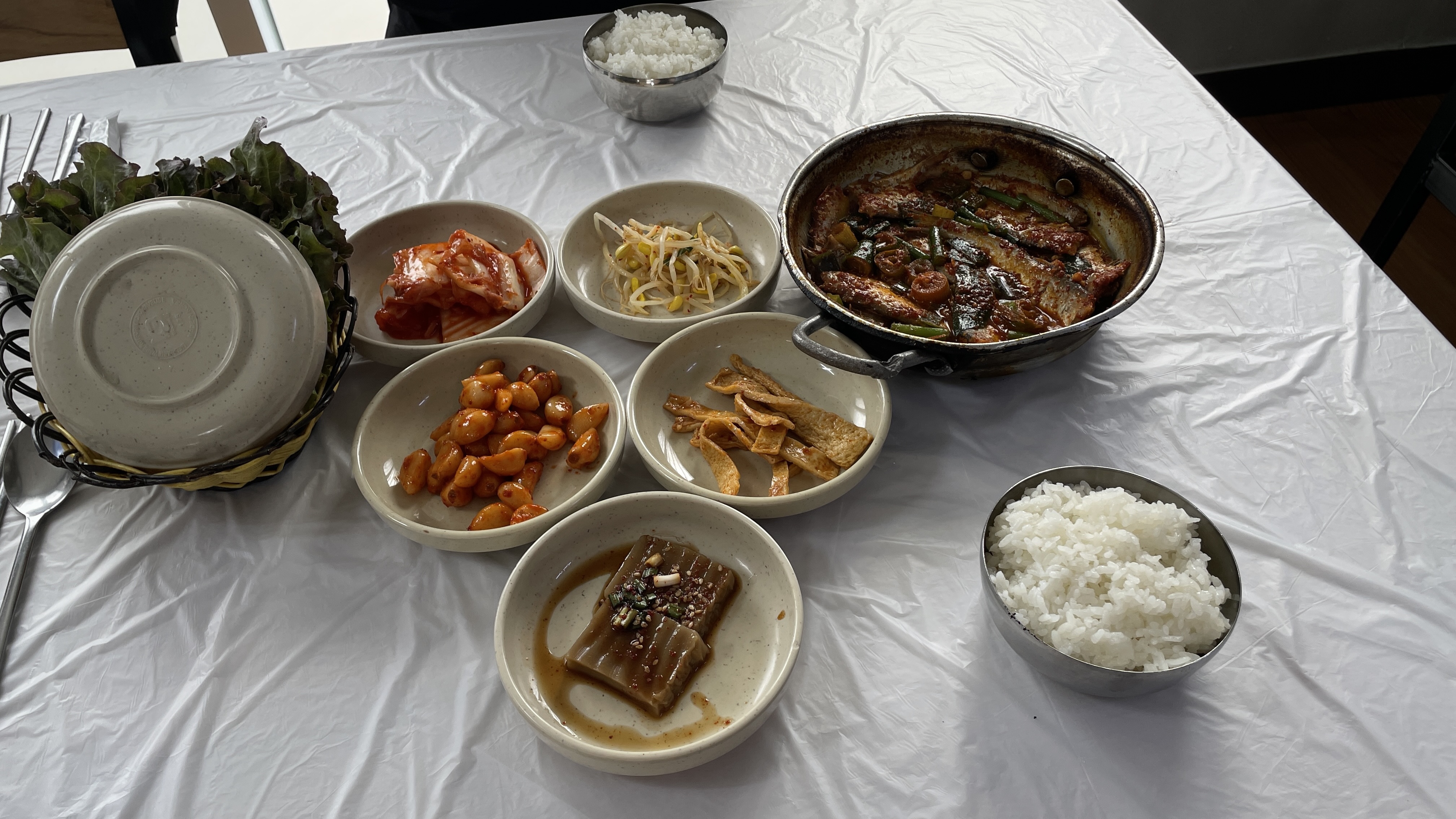 반찬 중에 저 양념 생마늘이 빙뎅이와 너ㅓㅓㅓㅓ무 잘 어울렸다.