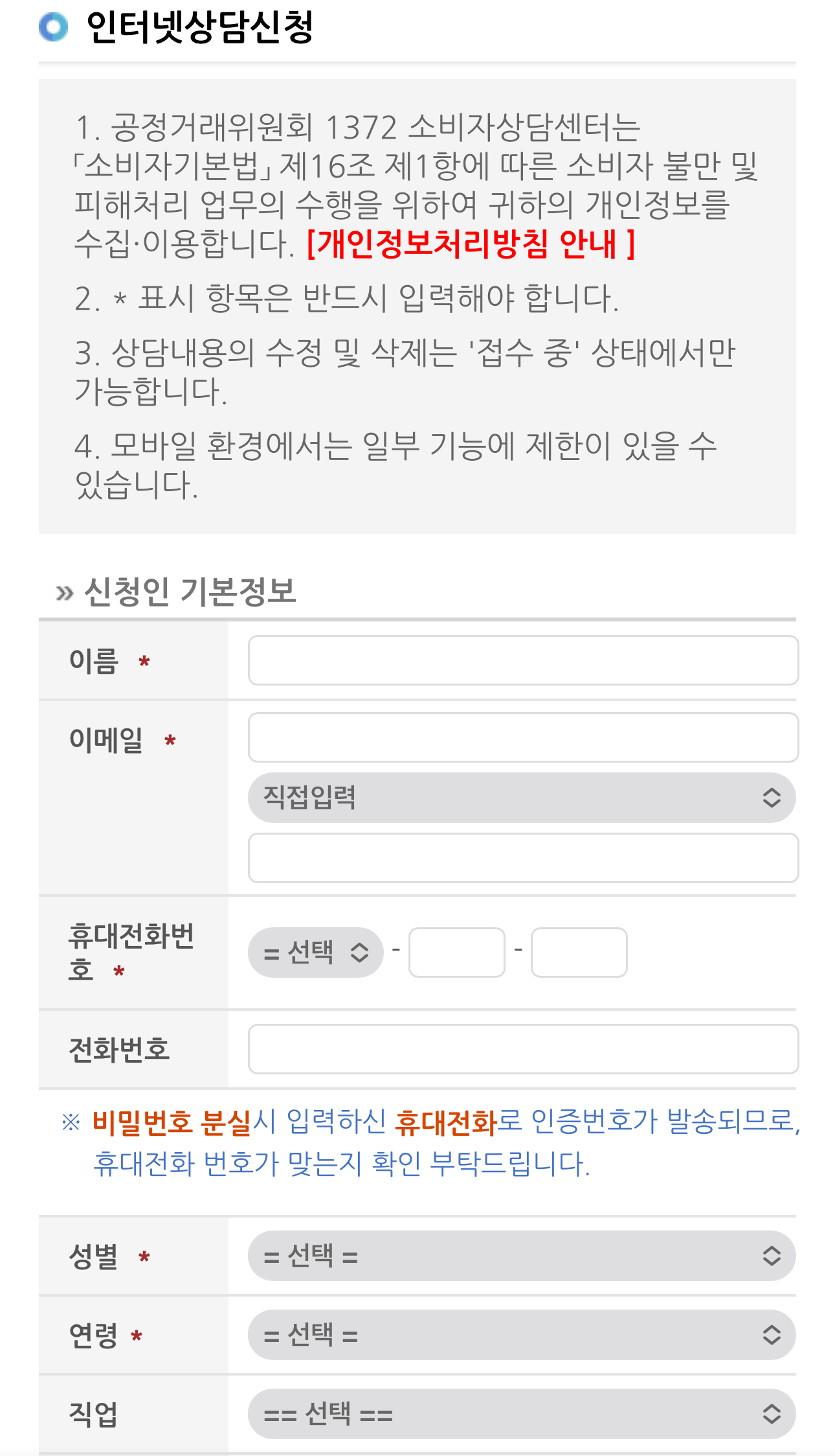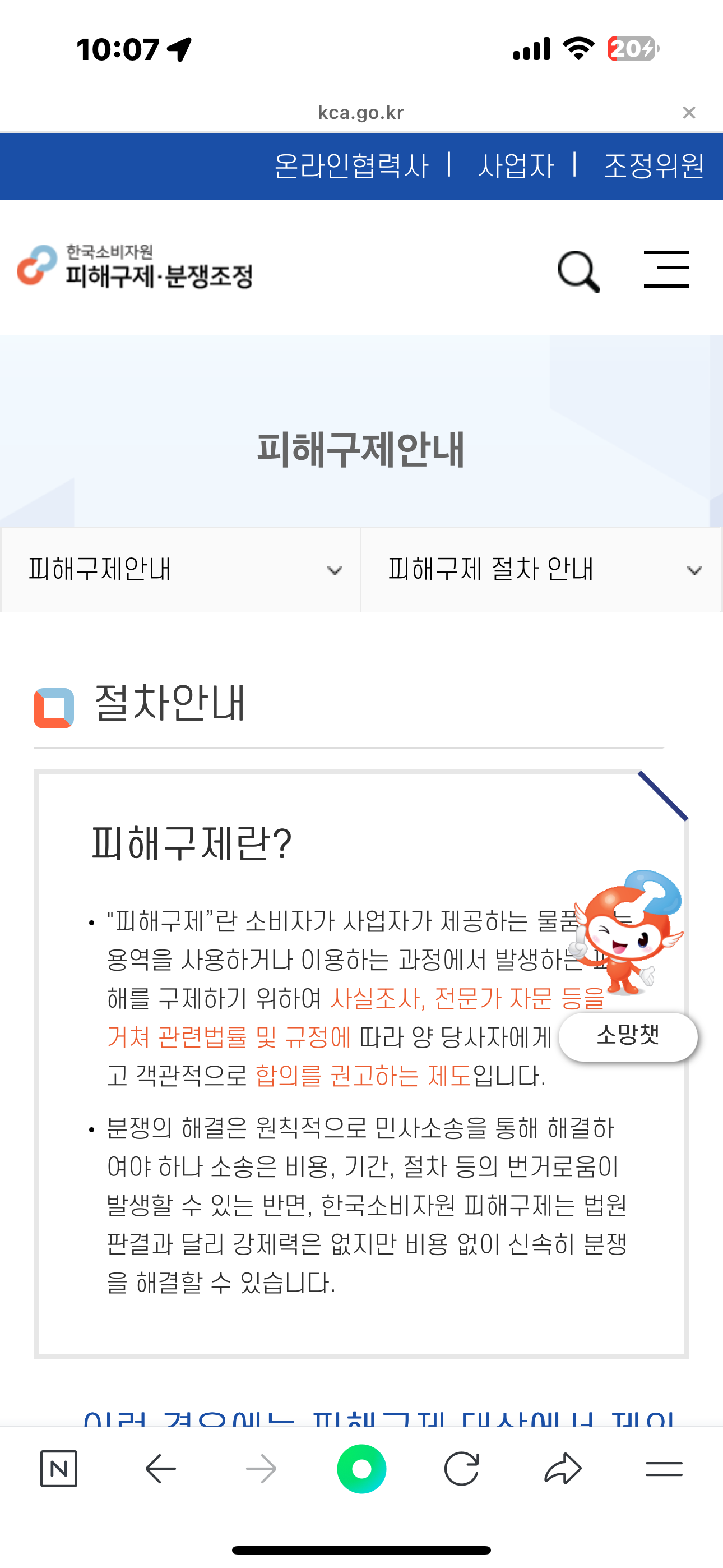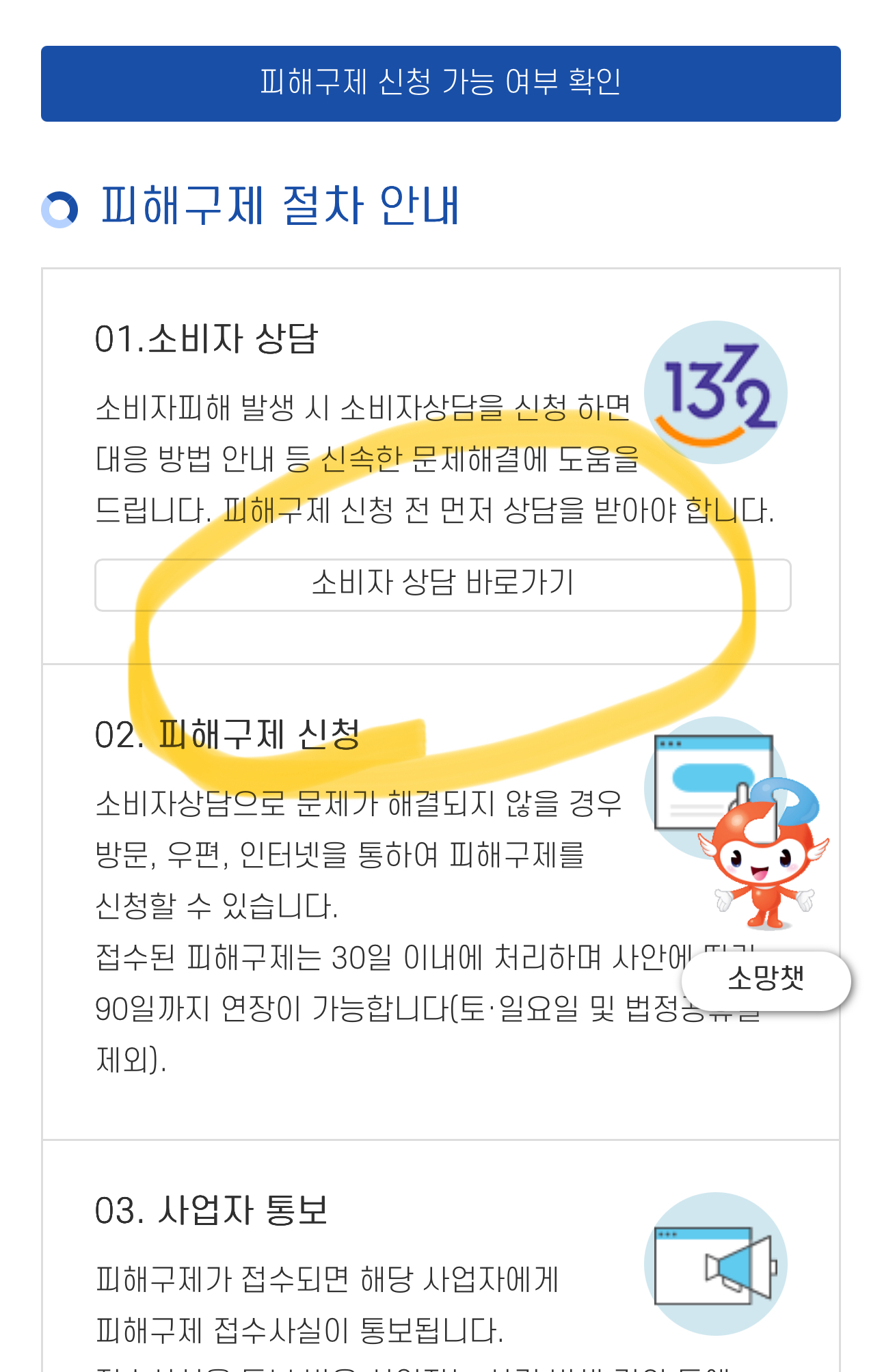 피해 구제 신청에서 소비자 상담 바로가기를 들어가면 접수 할 수 있다.