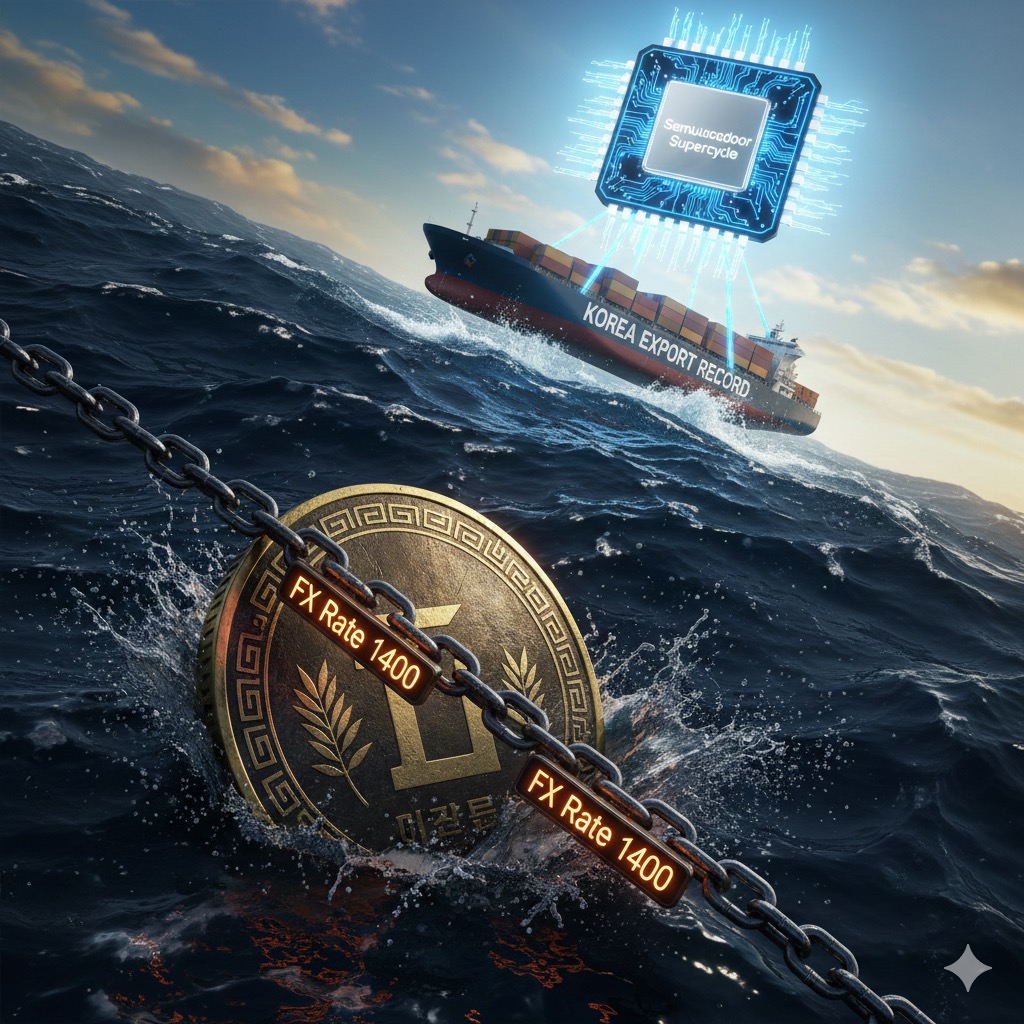 수출 호황이라는 맑은 하늘 뒤에는 **원/달러 환율 1,400원대**라는 거대한 먹구름이 있어요.